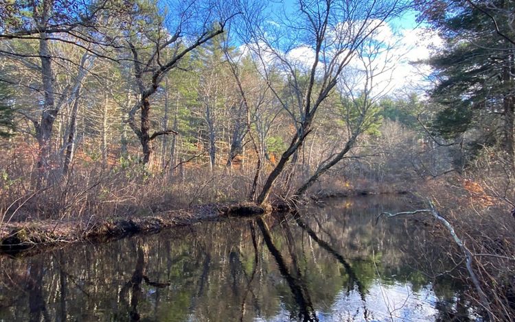 The Queen’s River Preserve offers a short, easy hike to one of Rhode Island’s most pristine rivers. The Queen’s River—cold and largely forested—forms the western boundary of the preserve.