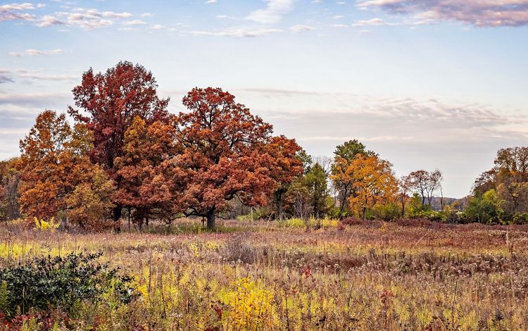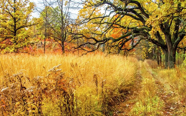 Cooler air and shorter days bring a vivid palette to natural areas across the state. In late September, gentians, asters and ferns bloom in prairies like Indian Boundary Prairies and Kankakee Sands. Prairie grasses begin to adopt bright shades of red, orange and yellow in October, creating a sea of fall colors on a windy day at preserves like Midewin and Nachusa Grasslands.