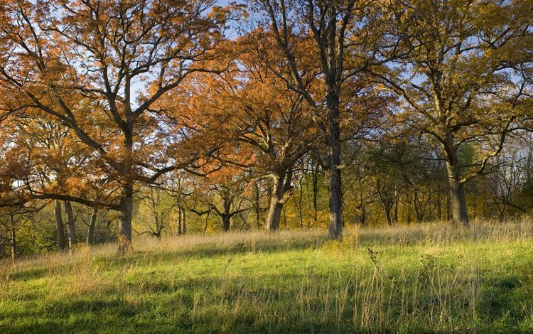 In November, bald cypress tree needles turn crimson red in the Cache River Wetlands and autumnal colors abound at Kankakee Sands when bottle gentian bloom, sassafras trees turn orange and red, oaks turn brown and yellow, and little blue stem grass turns orange.