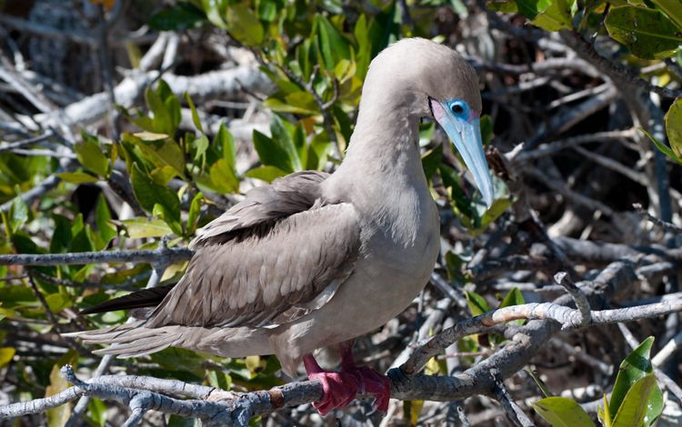 The red-footed booby is a large seabird of the booby family, Sulidae. As suggested by the name, adults always have red feet, but the color of the plumage varies—often gray and white. They are powerful and agile fliers, but they are clumsy in takeoffs and landings. Typically 25-30 inches and length and 30-40 ounces, the red-footed booby depends on a carnivorous diet.