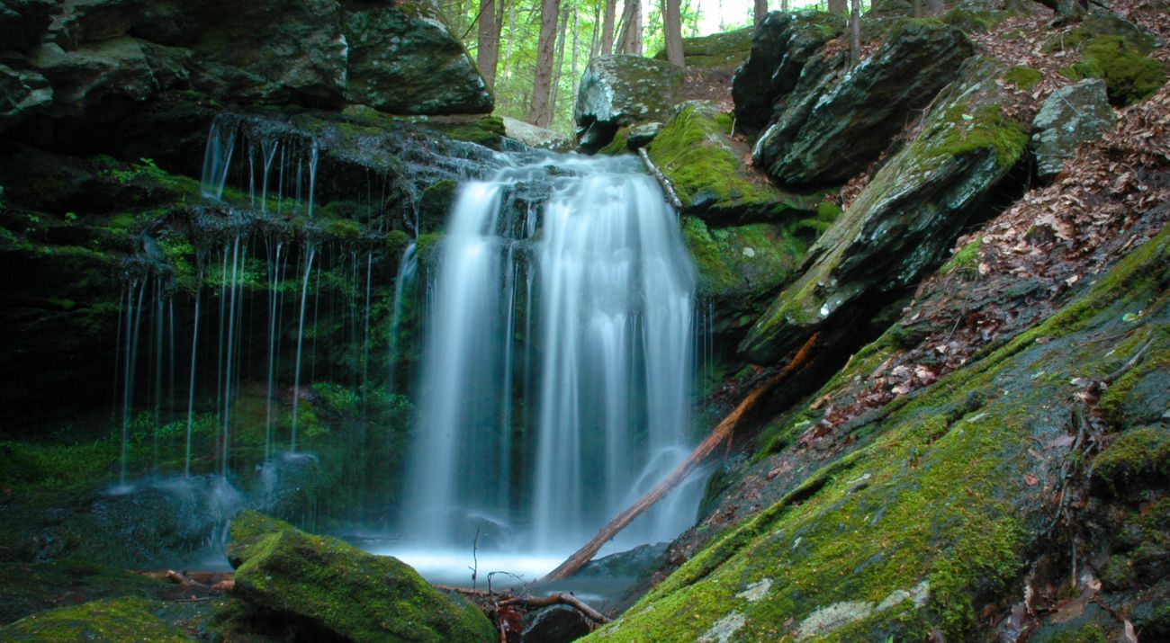 Ayers Gap is a rugged place that conceals an exquisite cascading waterfall amidst crags of exposed rock outcrops. There are flowing brooks, waterfalls, stately hemlocks and the cool, moist aroma of the preserve's interior gorge, also known as Bailey's Ravine. Above the ravine, a blazed trail follows the spine of a ridge, affording a terrific view east across the Franklin countryside.