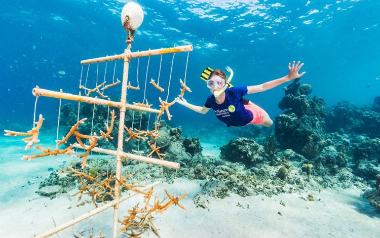 The Bahamas is home to one-third of the Caribbean’s coral reefs. Healthy corals are critical to the ecological and socio-economic productivity of the country’s tourism and fisheries sectors. Coral reefs contribute an estimated USD 671 million in dive related tourism, USD 23.5 million per year to fisheries production, and provide coastal protection for many of the vulnerable communities in The Bahamas. Despite their inherent value, this diverse ecosystem has dramatically declined over the past 50 years due to growing global and local threats. The Nature Conservancy is taking urgent measures to scale funding and on the ground action through scientific innovation and reef positive solutions. TNC is partnering with key stakeholders to advance protection, monitoring and long-term restoration strategies that safeguard coral reefs against stressors like overfishing, pollution, coastal development, coral disease, ocean acidification and other climatic and anthropogenic impacts.