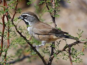 - In contrast, black-throated sparrows, a hallmark bird of deserts, were abundant in upland scrub plots. Apart from small numbers in the sparsest of thicket plots, they are almost entirely absent from bosque and thicket sites. Western kingbirds and verdins also preferred upland stands. These birds underscore the differences between upland and riparian mesquite habitats.