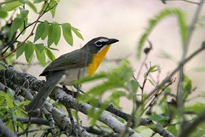 - Yellow warblers and yellow-breasted chats are also common in riparian stands but avoid upland scrub. These birds nest even more often in thickets than in mature bosque stands, which suggests that bird diversity may benefit from having a mix of tree ages within mesquite bosque zones.