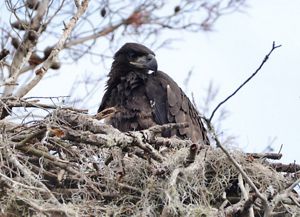Creatures of habit, eagles tend to use the same nest year after year--unless the nest has been claimed by other birds like great horned owls. In this case, the eagles will find an alternate nest, or fight the owl for its home. Kevin and Diana also keep an eye out for signs of new nests. The prime locations? Live pine trees near water with a reliable source of rodents and small birds nearby.