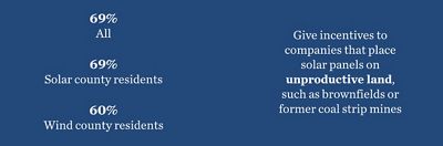 Hoosier voters support the following actions that Indiana can take to meet rising business demand for renewable energy, take advantage of federal tax credits, and balance social, environmental and economic concerns about land usage.