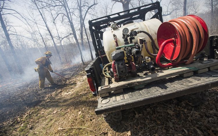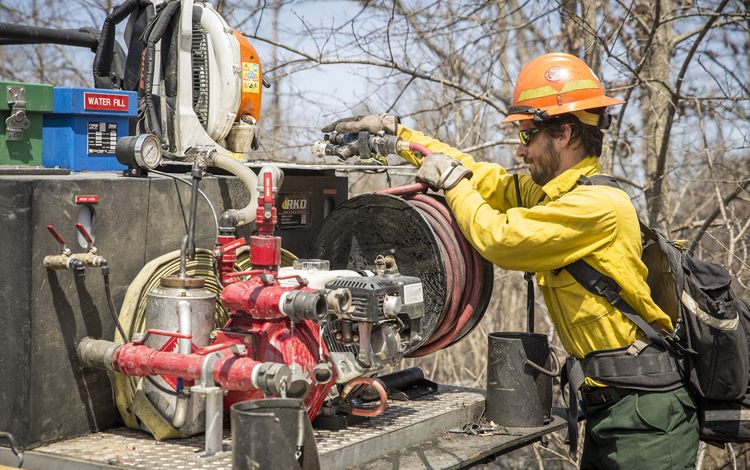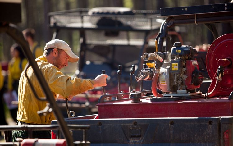 Fire season is just around the corner, so Pickett works with Minor to prepare. “We’ll go through all of our equipment, such as hand tools and drip torches and make sure it’s all organized and we are ready,” Pickett says. “We’ll go through our fire engine and make sure the truck is good to go. We’ll inspect our ATV and UTV units and our mobile fire caches, checking the trailers from the tongues to the tail gates.”