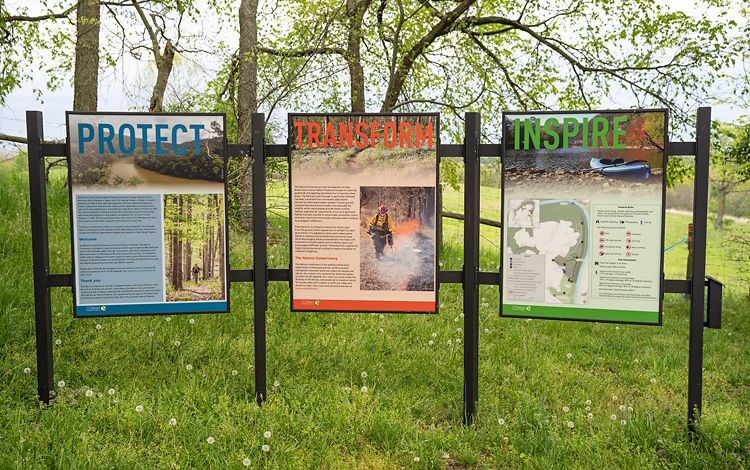 Updating and installing preserve infrastructure such as new signage takes place in the fall and at other times during the year. Fall is a good time to work on expanding trails and installing new trails. TNC personnel are currently working on installing additional trail mileage at Dupree Nature Preserve and at Sally Brown & Crutcher preserves.