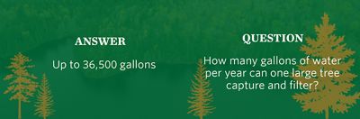 After tree canopies slow rainfall and the roots help the ground absorb the water, nutrients are filtered out. The water then flows into underground aquifers which provide an important source for clean water. At least 35% of the drinking water in the United States is supplied by groundwater.