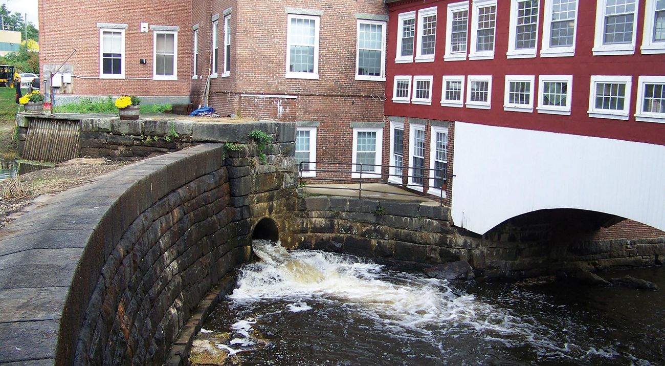 Stand on the catwalk spanning the Bellamy River in Dover’s historic Sawyer Mill and the sight below defies logic: an entire river flowing through one pipe only a few feet wide. It’s the single outlet for water moving past the mill’s upper dam before it flows under the centuries-old building—now an apartment complex home to hundreds of residents—over the mill’s lower dam and out to the Great Bay Estuary. Behind the upper dam sits tons of trapped sediment (about 104,000 cubic yards, or 5,200 dump trucks full), unable to move naturally downstream. Should the region experience a major storm similar to those that triggered the Mother’s Day floods in 2006, high water could damage both the catwalk and lower level apartments. Below the lower dam, sea-running fish like alewife, blueback herring and American eel meet a dead end on their way upriver to complete their life cycle—a barrier they’ve faced since the first dams were constructed in the Bellamy to power saw mills providing timber to the British Crown as early as 1650.