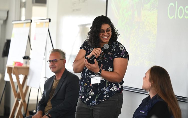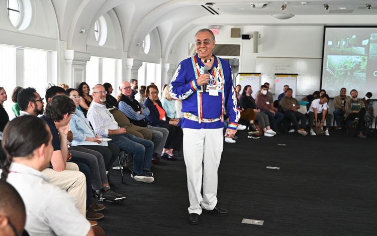 The Nature Conservancy co-hosted the event with the University at Buffalo (UB), which has one of the oldest Indigenous Studies programs in the United States. The event program was shaped by an advisory council composed of Norma Jacobs, Wolf Clan of the Cayuga Nation; Ruchatneet Printup, Turtle Clan of the Tuscarora Nation; Mishuana Goeman, Tonawanda Band of Seneca, daughter of enrolled Hawk Clan and chair of UB Department of Indigenous Studies; Jason Corwin, Deer Clan of the Seneca Nation and UB assistant professor of Indigenous Studies; and Ryan McPherson, UB chief sustainability officer; and Curtis Ogden from the Interaction Institute for Social Change.