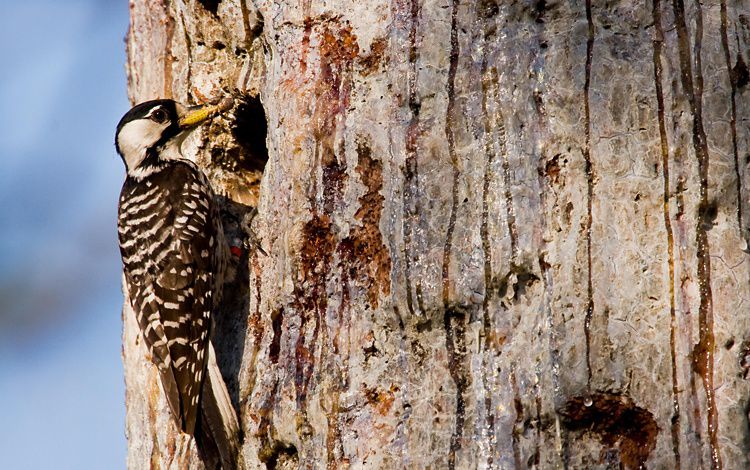 Longleaf pines are considered foundational species, meaning they provide essential structure and habitat for a wide range of plants and animals. One iconic example is the Venus flytrap, along with many other carnivorous plants. The pine barrens tree frog, a species considered significantly rare in North Carolina, also depends on fire-managed habitats. These frogs breed in Carolina Bays, streamhead pocosins and Sandhill seeps—wetland environments that benefit from periodic burning. Fire helps control shrub density and prevents hardwood encroachment, preserving the frog’s breeding habitat. The pine barrens tree frog has been observed at TNC’s Calloway Forest Preserve, which is also home to other rare species, including the federally threatened red-cockaded woodpecker.