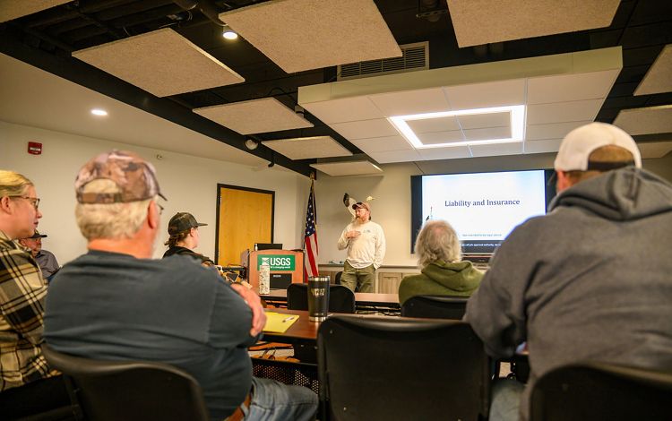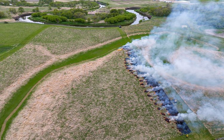 On a late spring day in Jamestown, North Dakota, an overcast sky threatened rain. A dozen landowners, land managers and conservation experts stood ready with drip torches and water sprayers in hand. They were gathered to practice conducting a prescribed burn on a few acres at the U.S. Geological Survey’s Northern Prairie Wildlife Research Center.
