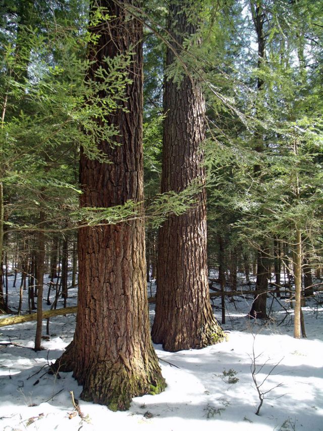 Hemlocks in snow fall at Brook Natural Area in Salt Springs State Park