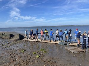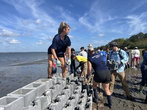 Living shoreline build, SC: 2025 Volunteers help restore an oyster reef at Marine Corp Airforce Base, Beaufort County, SC © Kyle Baskin