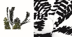 Christmas ferns. Their greenness stands out clearly among the fallen leaves. I started drawing them, and then photographing their silhouettes. Can you see how the fronds attach to the stem at the base, at the very bottom of each single leaf?
