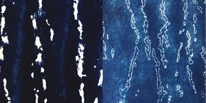 With the rubbings, I’ve then made cyanotypes, the almost 200-year-old photographic process of coating paper or cloth with light sensitive emulsion, exposing it to sunlight, and rinsing in water.