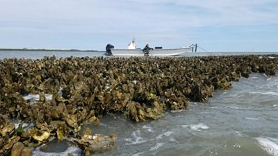 Oyster reef restoration also offers a nature-based solution for adapting to climate change. Reefs can take the punch out of storm waves and help slow the rate of erosion along marsh edges. As they grow, oyster reefs accrete vertically, keeping pace with sea level rise and increasing their capacity for storm protection.