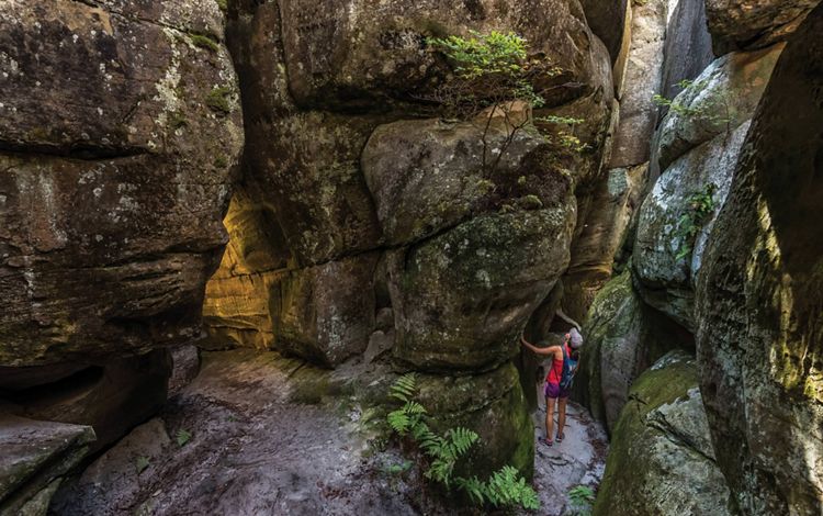 Go Deep: Reminiscent of a southern Utah slot canyon, the highlight of Channels Natural Area Preserve and surrounding state forest is descending into a mountaintop via maze-like passages winding through ancient sandstone.