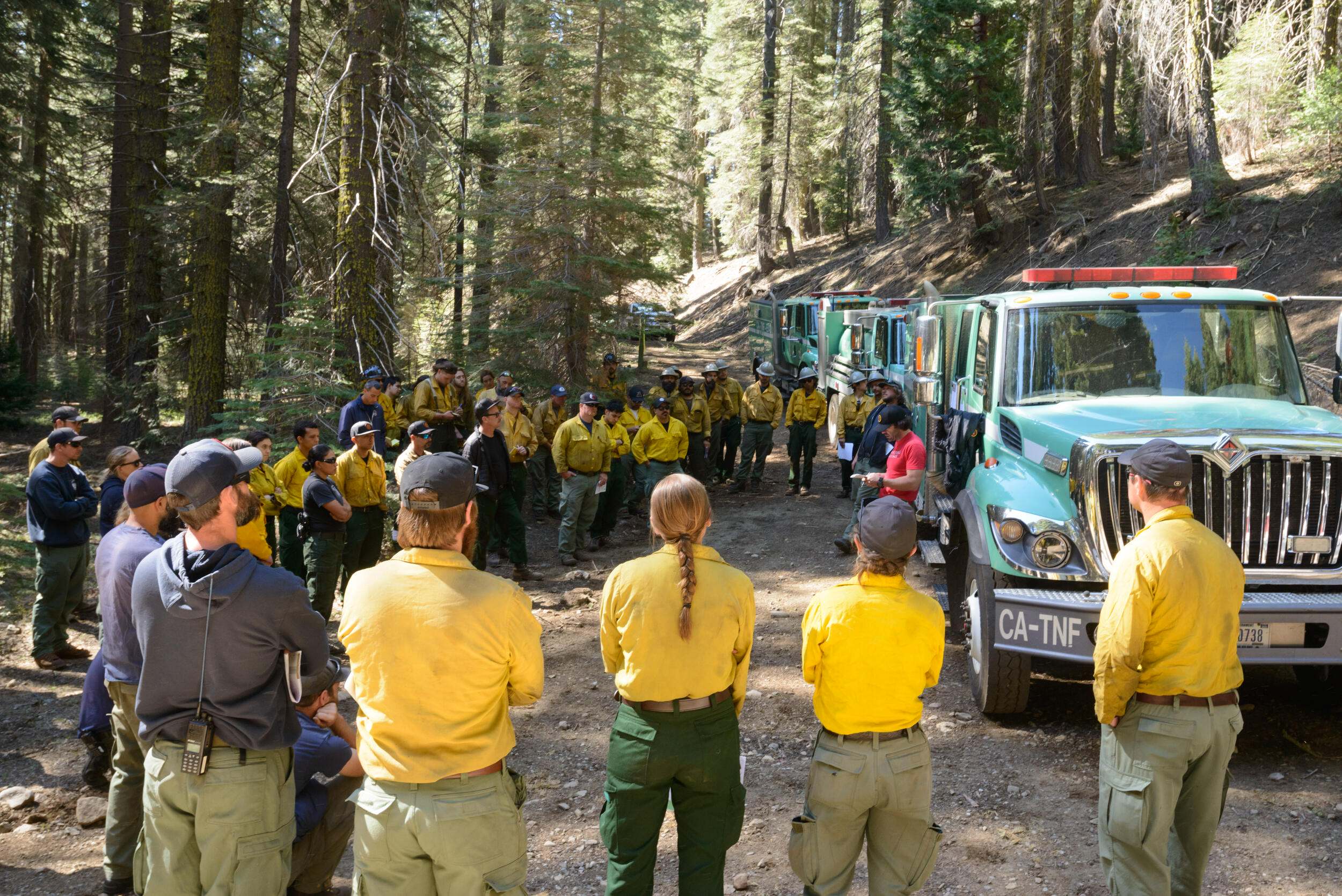 The burn boss, firing boss and holding boss huddle and, based on the fire behavior, decide whether the burn will proceed. If it’s a yes, the crew jumps into action. Against a soundtrack of radio chatter and the crackle of fire on leaves and needles, people fan out.