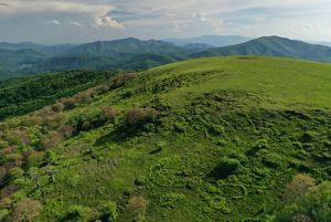 At 5,540 feet, Big Yellow’s open, grassy bald peak offers a vantage point from which you can look out over range after range of the Blue Ridge Mountains. Part of the Roan Highlands, Big Yellow is a grassy bald, an unusual community type resembling a high-elevation pasture and found between 5,200 and 5,800 feet on dome-shaped summits and ridges. Possibly remnants from the last ice age, these "sky islands" have a principally northern climate in a southern location and harbor unique species requiring a cool climate and lots of sunlight. The origin of the balds is unclear, but they were probably formed by a variety of factors, such as climate, grazing, and human-ignited fires.