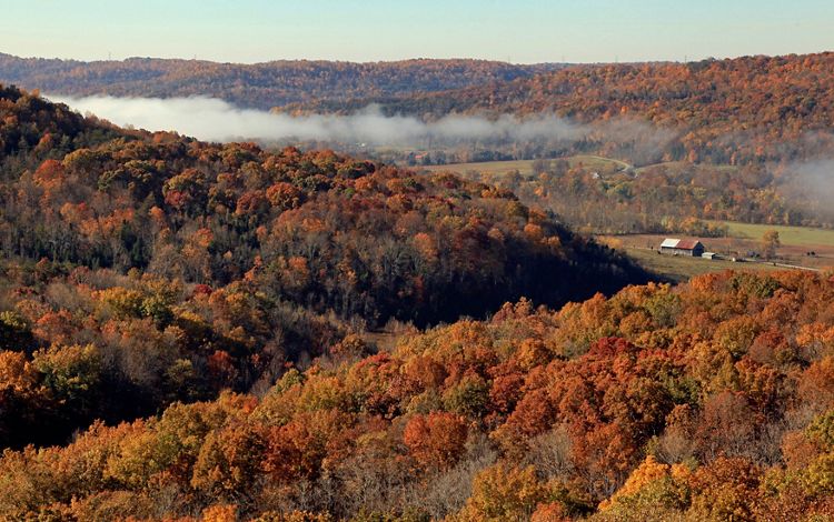 The most popular of all trails in the Edge of Appalachia Preserve System is the one that leads to Buzzardroost Rock, which stands like a giant limestone monument far above the waters of Ohio Brush Creek. The panoramic scene from this hilltop has been called Ohio’s most spectacular view.