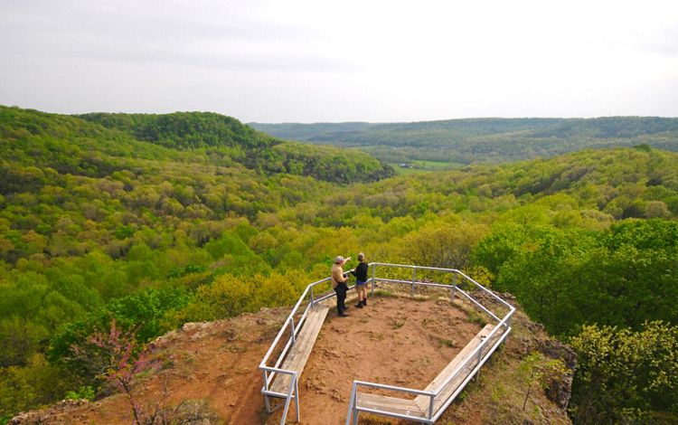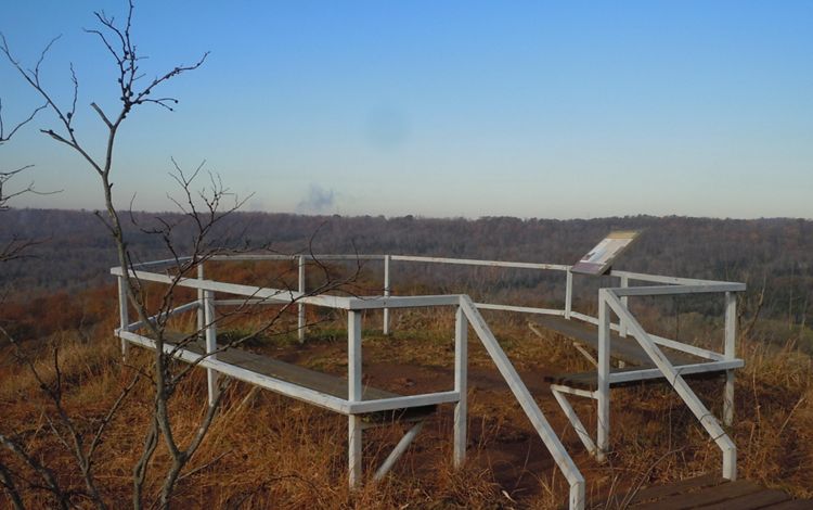 The 465-acre protected area is named for the turkey and black vultures (buzzards) frequently seen soaring above or roosting on the rock. This dolomitic outcrop towers 300 feet above the valley and provides habitat for a number of rare prairie plant species, including the plains muhlenbergia grass, which is classified as an endangered species in Ohio.
