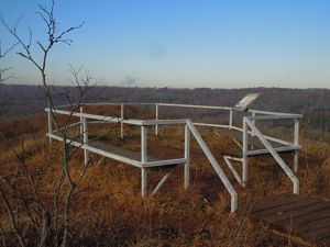 The 465-acre protected area is named for the turkey and black vultures (buzzards) frequently seen soaring above or roosting on the rock. This dolomitic outcrop towers 300 feet above the valley and provides habitat for a number of rare prairie plant species, including the plains muhlenbergia grass, which is classified as an endangered species in Ohio.