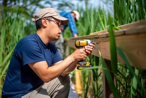 In addition to shellfish, crabs, snails, fish, and small mammals, you may see a clapper rail capturing a fiddler crab before it can reach the safety of its burrow, or an osprey diving to catch large fish. The marsh is a great place to watch birds year-round, especially shorebirds and waterfowl. One hundred different bird species have been spotted in the preserve.