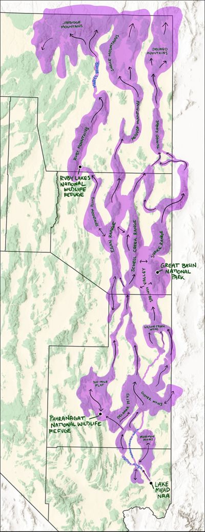 Many of the world’s species are on the move because of climate change. In North America, species are shifting their ranges north and to cooler places and higher elevations to adapt to a changing climate. In Nevada’s ecosystems, species will be increasingly stressed and are projected to migrate as they adapt to changing conditions.