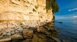 Its rocky cliffs, sandy beaches, marshy bays, fertile wetlands, and conifer forests provide habitat for plants and animals, some of which are found nowhere else in the world. The limestone that forms the rugged backbone of the peninsula is part of the Niagara Escarpment, an impressive work of geologic artistry that covers several states and two countries.