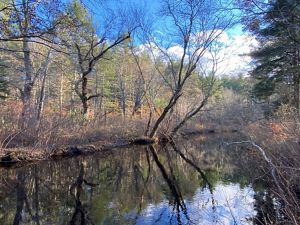 The Queen’s River Preserve offers a short, easy hike to one of Rhode Island’s most pristine rivers. The Queen’s River—cold and largely forested—forms the western boundary of the preserve.