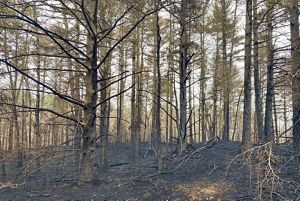Old town roads now serve as wide, flat hiking trails that wind through tall pine woods, some charred as a result of a fire in 2023. Highlights include a historic cemetery, views of the Queen’s River, and a long, open hayfield that is actively managed by a local farmer. Two small stone foundations lie just off the main trail, hidden in plain sight.