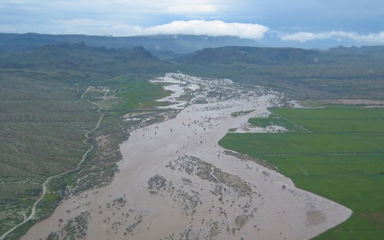 In 1969, Alamo Dam was completed to reduce flooding on the Bill Williams River. The dam created Alamo Lake, which receives all flows from the Big Sandy and Santa Maria rivers. The dam, located in a watershed that’s subject to both long droughts and large floods, significantly changed the woodland habitat downstream from the dam. In years of drought, the dam slowly accumulated and held all the water that flowed into it, leaving the Bill Williams—and the habitat it sustained—completely dry. In years of severe flooding, the gates at the dam were left open for months at a time, releasing a steady, high level of water that left the habitat downstream completely inundated. Both cases had devastating effects. Within a couple of decades, most of the forests that lined the Bill Williams had disappeared.
