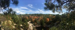 The topography of Waterboro Barrens originates from glacial outwash and features debris left behind by retreating glacial ice resulting in kettlehole heaths, hillsides covered in towering old-growth pitch pines, and moraines (glacial hills) covered in dense stands of scrub oak. There is also a leatherleaf bog, a small gorge, black spruce swamps, and miles of frontage on three ponds and the Little Ossipee River.