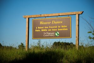 Weaver Dunes benefits greatly from volunteers. Most of the non-native pines have recently been removed from the preserve, and volunteers have collected seeds from the prairie to spread over the bare areas where the trees once stood. To maintain the prairie, the preserve has been divided into several units, each of which is burned every four years or so by the volunteer burn crew. Volunteers have also cut many junipers and other woody species that have invaded the prairie.