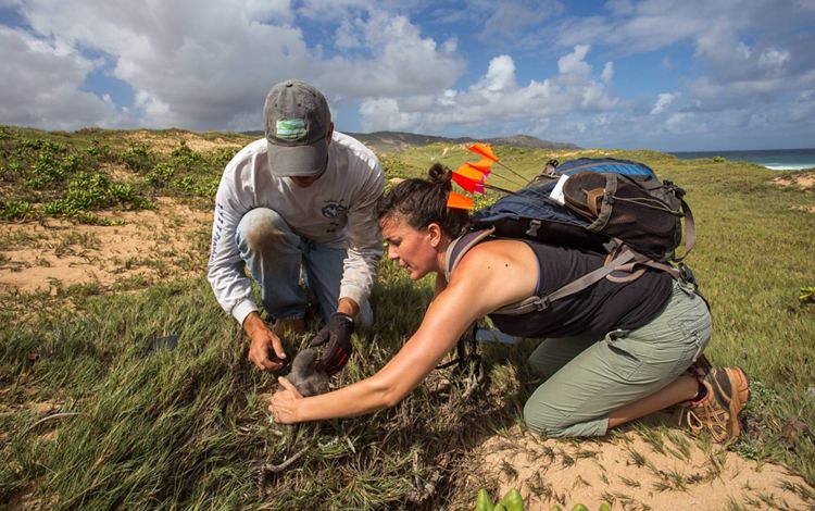 Penniman, manager of the Maui Nui Seabird Recovery Project, had arrived to count and band adult wedge-tailed shearwaters in The Nature Conservancy’s Mo‘omomi Preserve. The preserve sits on the remote northwestern shore of Moloka‘i, one of Hawai‘i’s most sparsely populated islands, separated by less than 9 miles of water from touristy Maui.