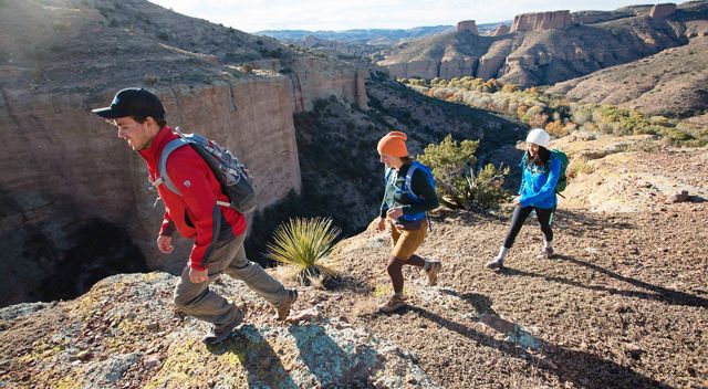 Most people enter through the west end of the canyon, 50 miles north of Tucson. A five-mile out-and-back hike will give you a sense of the canyon, but consider a multi-day traverse of the entire gorge. A visitor’s pass from the Bureau of Land Management is required to enter the wilderness area, but it’s worth the paperwork to see the Aravaipa shift from a desert landscape with saguaro cactus to a more lush forest with natural gardens of wildflowers and bushy cottonwood trees lining the riverbeds.