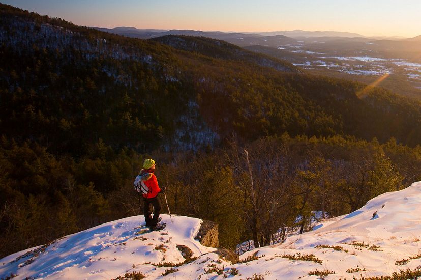 To get there, just follow the Peaked Mountain Trail for 2.1 miles as it climbs 1,000 feet over powder-covered slabs of granite. The hike up Peaked Mountain is just the beginning of the adventure. Green Hills has more than 11 miles of maintained trails and many paths that connect up with adjacent public trails.
