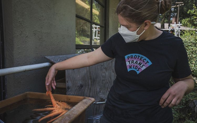 Here, University of Washington marine biologist Jason Hodin, whom Eddy describes as “everyone’s favorite biology teacher,” is spawning and rearing sunflower sea stars—lots of them—with no road map.