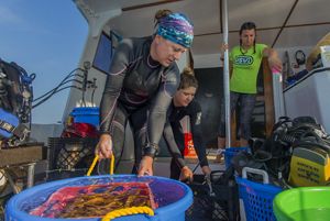Off the back of a chartered dive boat in Dry Tortugas National Park in the Gulf of America, Caitlin Lustic and a half-dozen other divers run through their game plan one last time. Then, one by one, they silently slip below the surface and begin ferrying colorful milk crates full of precious cargo toward the damaged coral reefs below.