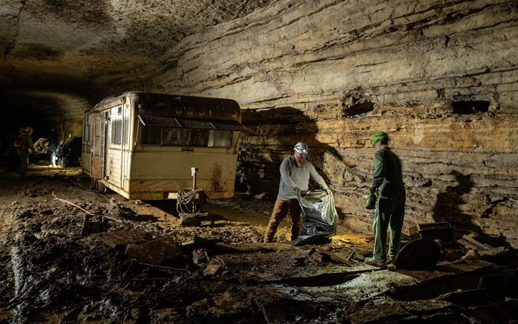 “The first day I got in there, I ripped those doors down,” Holliday remembers. He hauled the camper out with a skid steer and mustered a trash removal crew of state agencies, recreational cavers and the public.