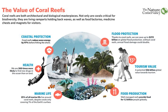 Coral reefs have a value of $9.9 trillion USD globally and are relied upon by at least 500 million people.