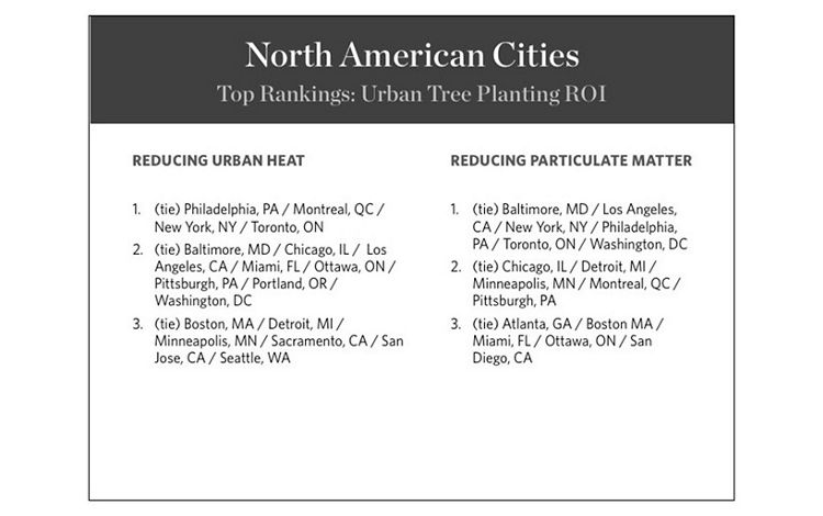 Most of the cooling and filtering effects created by trees are fairly localized, so densely populated cities—as well as those with higher overall pollution levels—tend to see the highest overall return on investment (ROI) from tree plantings.