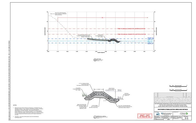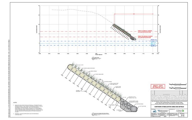 In the Northeast, The Nature Conservancy is leading a regional partnership with the Northeast Regional Ocean Council, state Coastal Zone Management programs and local organizations to advance the practice and policy of living shorelines through pilot projects and monitoring existing sites.