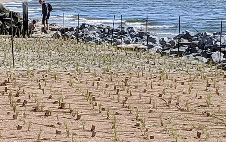 - Survival of the beach grass was high but took longer to root than expected. A follow-up program is needed to fill in some of the bare spots as well as to address the small amount of invasive vegetation that occurred.