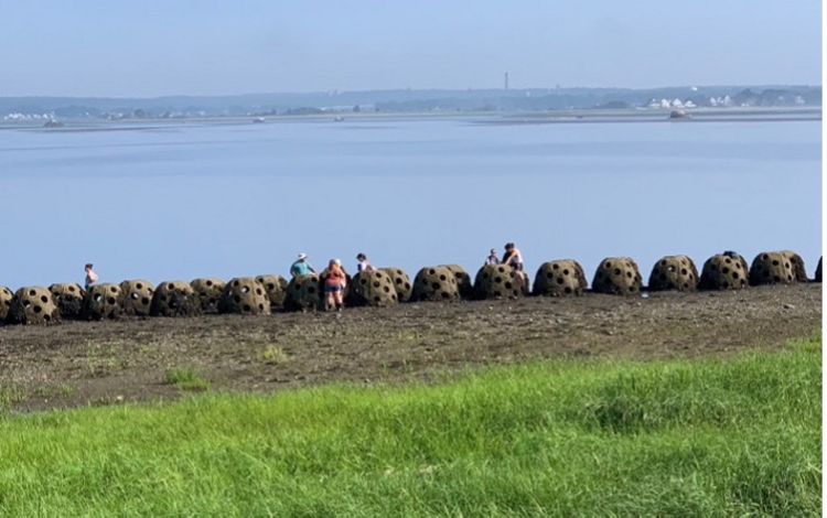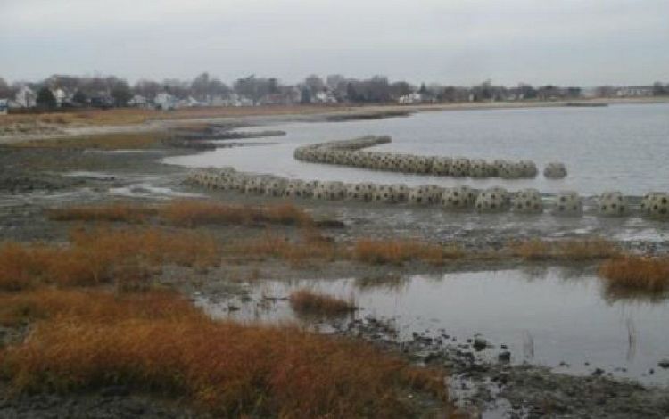 In 2014, a 150-foot living shoreline pilot project was constructed in the intertidal zone of the Housatonic River Estuary shoreline. The living shoreline consists of an artificial oyster reef, constructed using 64 concrete reef balls and a smooth cordgrass (Spartina alterniflora) marsh. The project served as a proof-of-concept to demonstrate the potential for living shorelines to reduce erosion of intertidal sediments and restore wildlife habitat within the adjacent estuary. It was designed to dissipate wave energy and associated scour, and to disrupt long-shore sediment transport. Alteration of these processes was intended to result in a quiescent environment, which would allow for sediment accretion and re-establishment of the intertidal marsh that was historically present at the site.