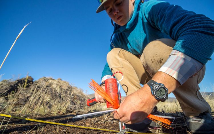 Ihrie, and the landscape she cares for at Craters of the Moon National Monument and Preserve, are now part of an exciting pilot program to test an inventive solution for stopping the invasive rampage across sagebrush country. Ihrie is working with Roxanne Rios, a scientist with USDA Agricultural Research Service (ARS), and Dusty Perkins, the land stewardship manager for TNC’s Idaho Chapter, to try something new: protect the native plant seeds while killing the invasives with herbicides.