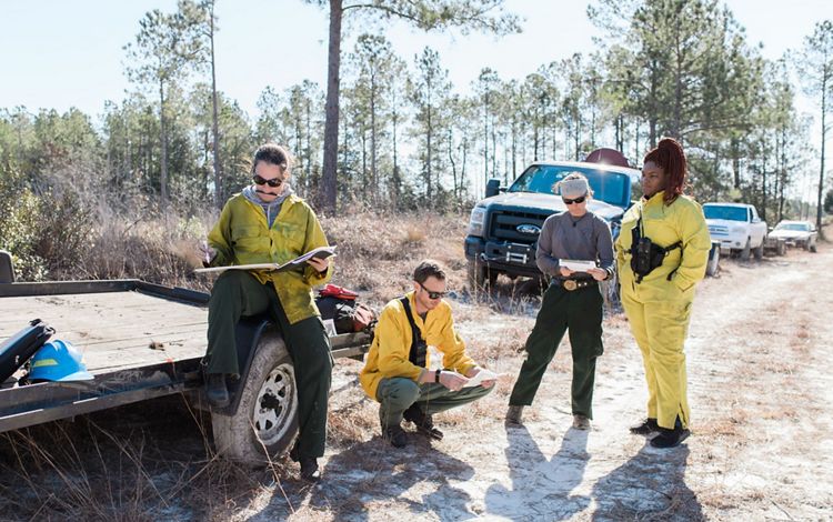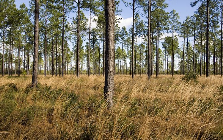 The Green Swamp Preserve contains some of the country’s finest examples of a healthy longleaf pine savanna managed with controlled burning. The trail is 1.3 miles one-way (2.6 miles in total) and 2-3 feet wide. The trail is mostly flat, with no significant steep slopes. The walking surface is uneven with dirt, grasses, inundated water and exposed roots; we advise wearing closed-toed shoes. The route is marked with red diamonds on the trees, and it starts at the parking lot area (trailhead), where you will see a pond and continue through a pine savanna until you reach a boardwalk. After crossing the boardwalk, you will hike through Shoestring Savanna, Stringbean Savanna and Beanpatch Savanna—where you will turn around and walk back. Always follow the red diamonds on the trees. Download the trail map before you visit.